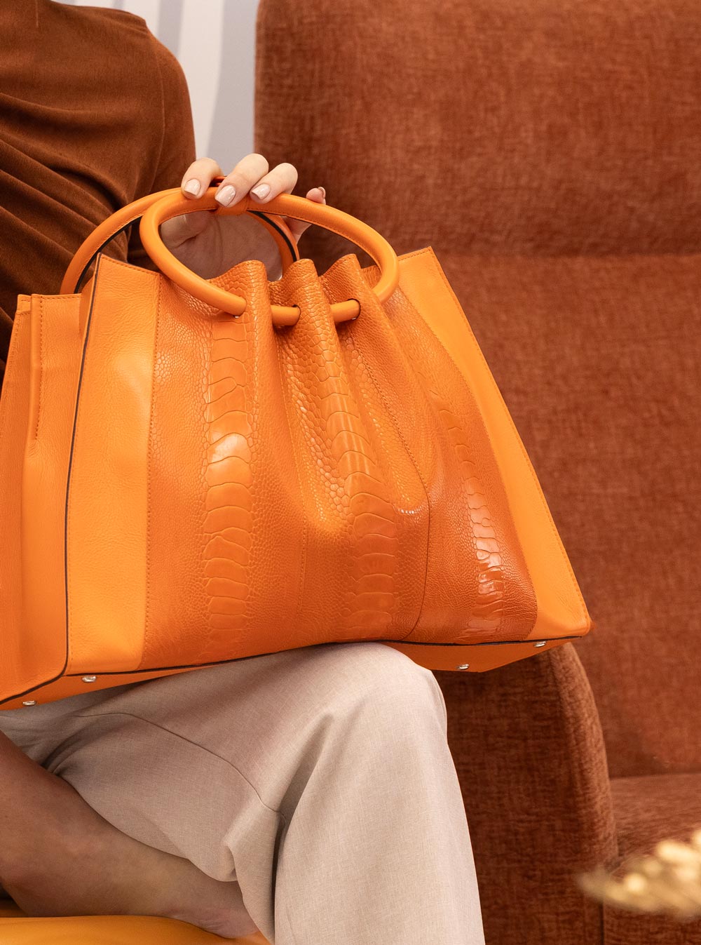 Bold, sculptural and unmistakably refined, the PITO is one of Via La Moda’s most distinctive creations. Crafted from genuine ostrich leg leather, this piece highlights the natural scales and rich texture of one of the world’s rarest exotic materials — a true celebration of craftsmanship and individuality.