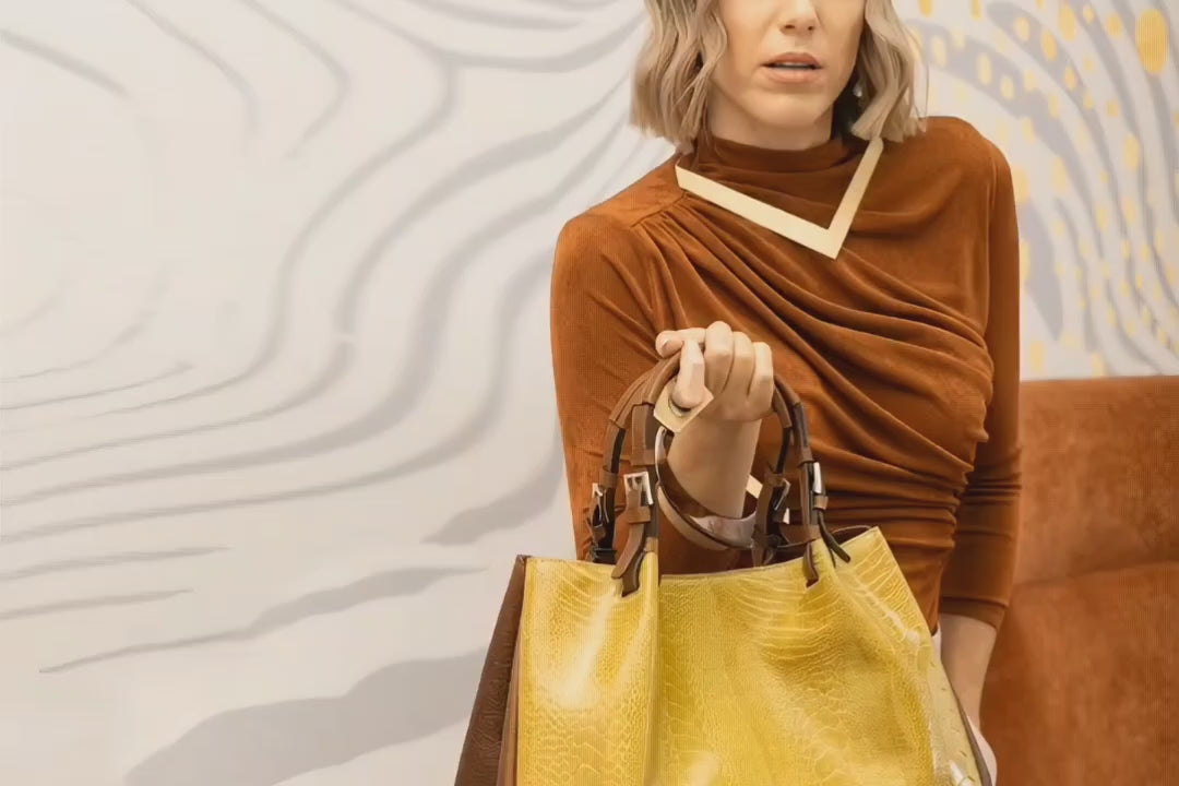 The PITO’s signature feature is its circular, leather-wrapped handle, which creates an elegant gathered effect at the top of the bag. This architectural detail gives the silhouette its iconic character: structured yet fluid, modern yet timeless.